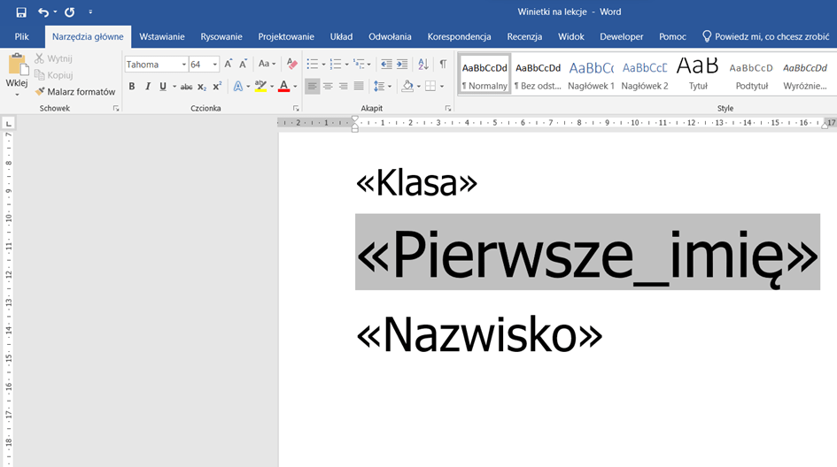 Teraz zaczyna się zabawa z korespondencją seryjną.