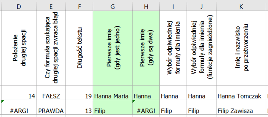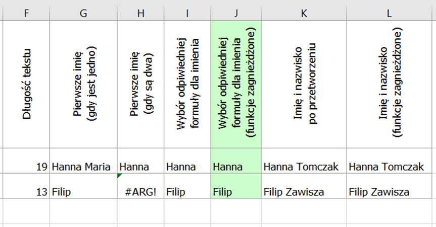 W efekcie dostaniemy kolumnę z prawidłowymi imionami niezależnie od ich ilości (kolumna I).